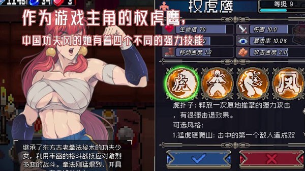 凉屋的亲女儿,继承了东方老拳法秘术的功夫少女,利用丰富的格斗战技应对激烈多变的战斗。拳法刚猛爆裂,并具有良好的体力。权姐作为这个游戏的初始角色,各项数据都中规中矩,动作也较为灵活,攻击方式是充满功夫风格的四连段,伤害和操作手感都很不错。