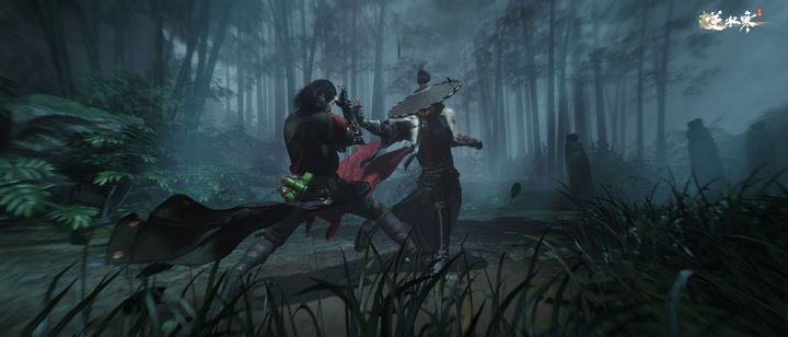 在与好友组队刷副本时,跟敌人大战三百回合后对手逃遁,你紧随其后。结果画风一转,3D游戏突然变成水墨风格的2D横版过关游戏......这是另类的“降维打击”。