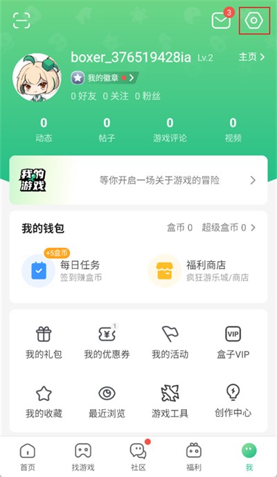 1、首先打开4399游戏盒app,进入软件后点击界面右下角【我】选项;