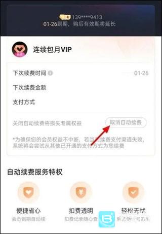 4、然后点击取消自动续费